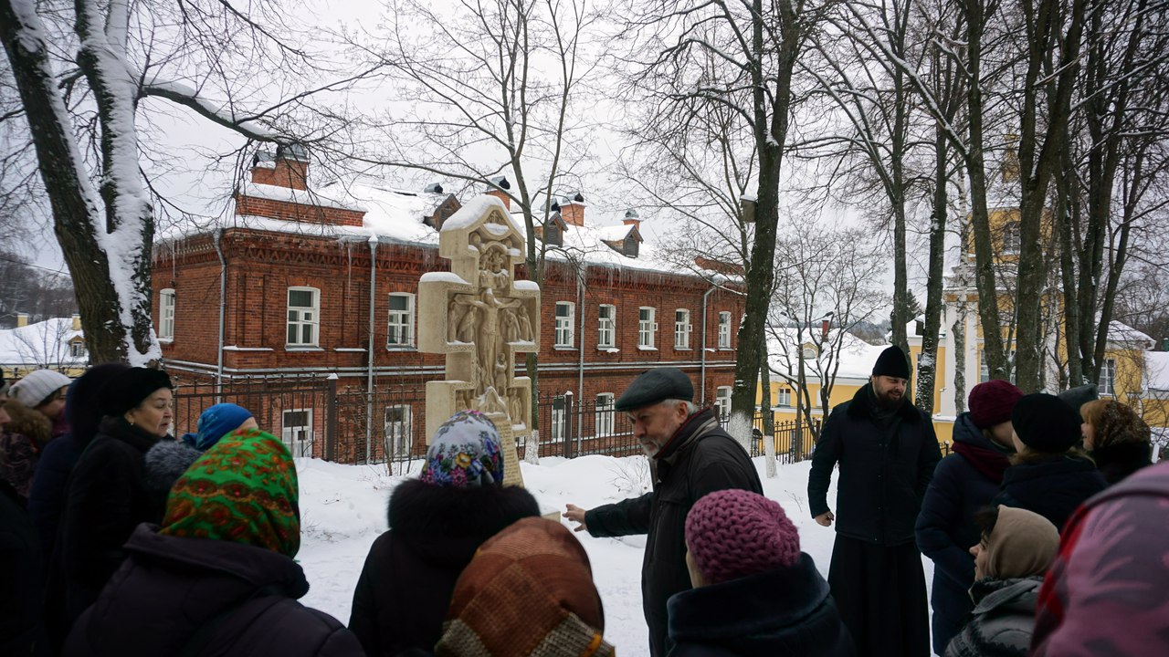 На территории Хотькова монастыря паломники оказались уже при свете дня. Помолились и приложились к поклонному Кресту, который был установлен на месте погребения рода Сергиева. Прошли в Покровский храм, где у раки с мощами Преподобных соборно пропели акафист святым Кириллу и Марии Радонежским, после чего отец Александр Герего, возглавивший поездку, помазал всех присутствующих святым елеем из неугасимой лампады, висящей над ракой Преподобных.