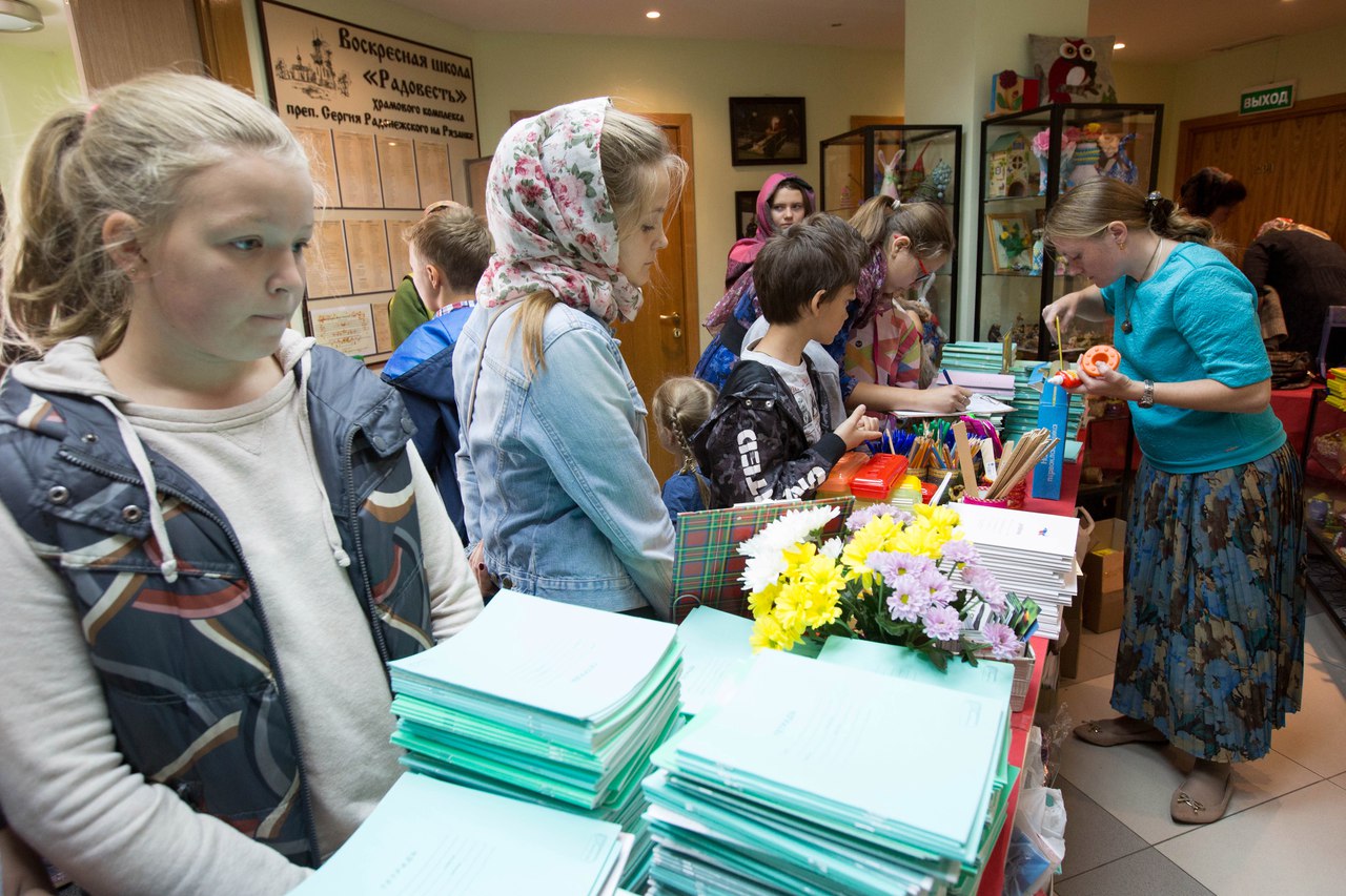 В этом году молебны на новый учебный год в храмовом комплексе прп. Сергия Радонежского совершались 31 августа и 3 сентября. Многие семьи уже в эти дни получили помощь, но внимание и забота о многодетных и нуждающихся семьях нужны не только накануне начала учебного года, но и на протяжении всего периода учебы. Поэтому сбор и раздача вещей и канцелярских принадлежностей на Рязанке продолжаются.