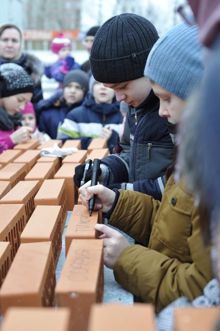 «Именные кирпичи наши прихожане начали подписывать с лета, когда в воскресной школе уже начались каникулы, — рассказал иерей Кирилл Краев, настоятель строящегося храма и директор воскресной школы. – А осенью внезапно выяснилось, что мало кто из детей принимал в этом участие. Поэтому мы решили дать возможность самым юным нашим прихожанам внести на кирпичики свои имена. Заодно они помогли перенести на строительные кирпичи имена и других жертвователей».